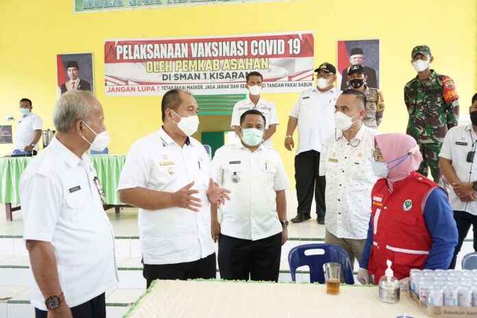 mandalapos.co.id, Asahan– Wakil Bupati Asahan Taufik Zainal Abidin, didampingi Kacabdis Kisaran Dinas Pendidikan Provinsi Sumut, Kurnia Utama, meninjau pelaksanaan vaksinasi Covid-19 untuk pelajar di SMA Negeri 1 Kisaran, Kecamatan Kota Kisaran Timur, Rabu (29/09/2021).