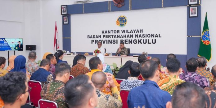 Bengkulu, Mandalapos.co.id – Dalam menjalankan tugas, jajaran Kementerian Agraria dan Tata Ruang/Badan Pertanahan Nasional (ATR/BPN) harus memastikan alur pekerjaan yang dilakukan sesuai dengan peraturan perundang-undangan berlaku. Pesan ini Wakil Menteri (Wamen) ATR/Wakil Kepala (Waka) BPN, Ossy Dermawan, sampaikan saat memberikan pembinaan kepada jajaran Kantor Wilayah (Kanwil) BPN Provinsi Bengkulu, Selasa (16/09/2025).
