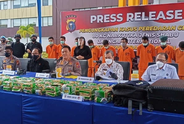 Kabid Humas Polda Riau Kombes Sunarto, mengatakan peredaran gelap 80 kg sabu diungkap pada Jumat (14/1). Penangkapan itu dilakukan setelah Subdit I Ditnarkoba mendapatkan informasi tentang masuknya narkoba jenis sabu dari Malaysia.