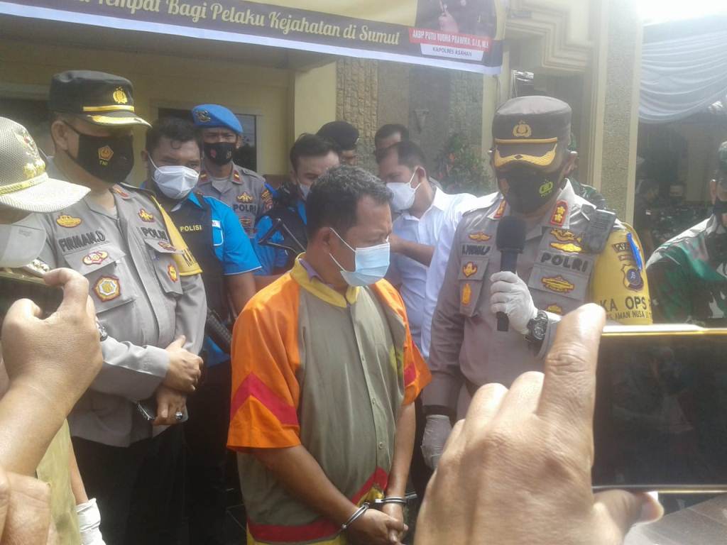 “Jadi, setelah 4 hari melakukan penyelidikan, akhirnya pada hari Minggu (12/09/2021) tim gabungan berhasil menangkap salah satu dari mereka yang berperan sebagai kurir berinisial IR (47) warga Sei Tualang Raso, Kota Tanjung Balai. IR ditangkap di jalur lintas menuju ke Tanjung Balai dari Siantar,” ungkap Kapolres Asahan AKBP Putu Yudha Prawira, dalam konferensi pers, Senin(20/9) di Mapolres Asahan didampingi Bupati Asahan, H Surya.