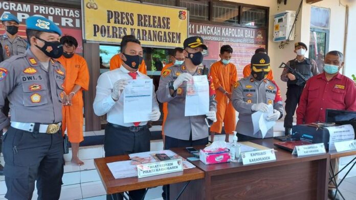 Polres Karangasem saat konferensi pers penangkapan Pengguna dan Pemalsu Surat Vaksin Covid-19 (Foto: Ist)