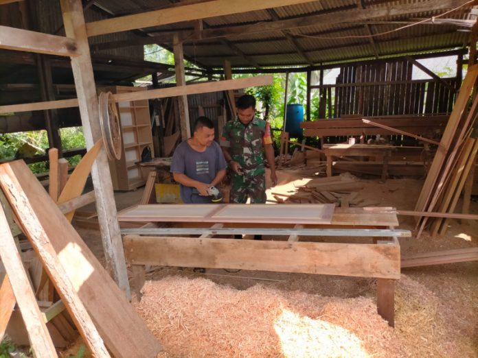 Mandalapos.co.id, Anambas — Anggota Koramil 02 Tarempa, Praka Indra Lesmana, melaksanakan komunikasi sosial (komsos) dengan warga bernama Yunus yang sehari-hari bekerja sebagai pengrajin mebel di Desa Tarempa Selatan, Kabupaten Kepulauan Anambas, Minggu (15/10).