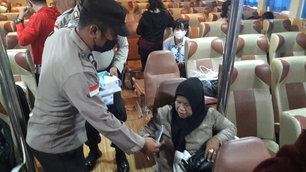Maandalapos.co.id, Anambas — Polsek Siantan membagikan masker kepada penumpang kapal cepat MV. VOC Batavia di Pelabuhan Pelni Tarempa, Kabupaten Kepulauan Anambas, Rabu (12/10).