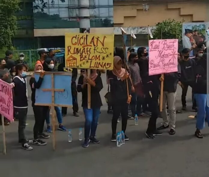 Massa yang beriringan dengan membawa truk fuso itu sampai didepan kantor Wali Kota sekitar pukul 08.00 pagi. Mereka berorasi sambil membawa poster yang berisikan tuntutan mereka.