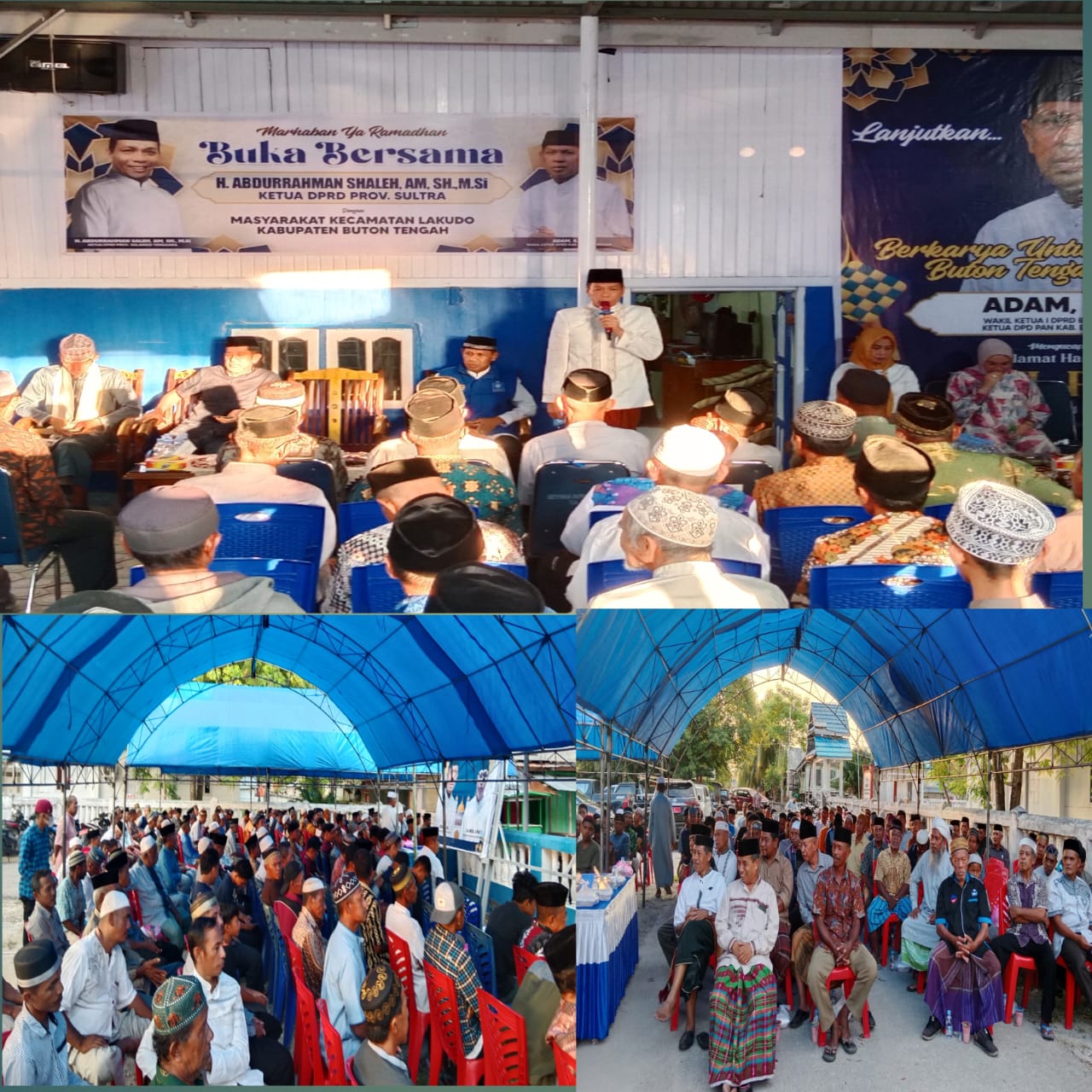 Ketua DPRD Provinsi Sultra, Abdurrahman Shaleh, dalam sambutannya dihadapan ratusan warga Lakudo mengatakan, kunjungannya di Buton Tengah ini merupakan giat safari Ramadan yang rutin dilaksanakan setiap tahun dengan disertai buka puasa bersama masyarakat Buton Tengah di Lakudo.