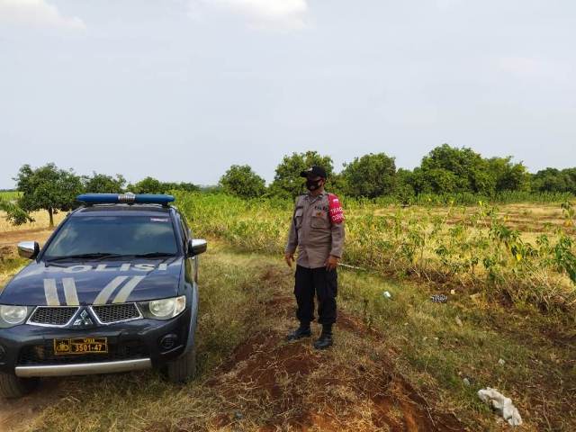 Mandalapos.co.id, Indramayu- Kapolsek Cikedung, Ipda Junata, melakukan patroli di lahan HGU milik PT. Pabrik Gula (PG) Rajawali II Jatitujuh, Desa Jatisura, Blok Bolang, Kabupaten Indramayu, Minggu (3/10/21).