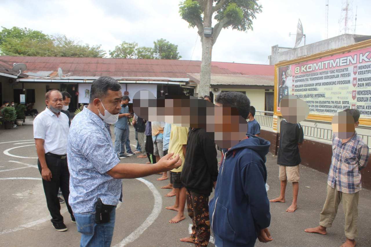“Terhadap anak-anak tersebut, dijemput oleh orang tua masing-masing, setelah dilakukan pembinaan. Disaksikan orang tua, Tokoh Agama, dan Masyarakat setempat, para remaja itu membuat surat pernyataan untuk tidak mengulangi perbuatannya dan nantinya surat itu akan dikirimkan ke sekolah dan pihak terkait lainnya,” beber Kasat.