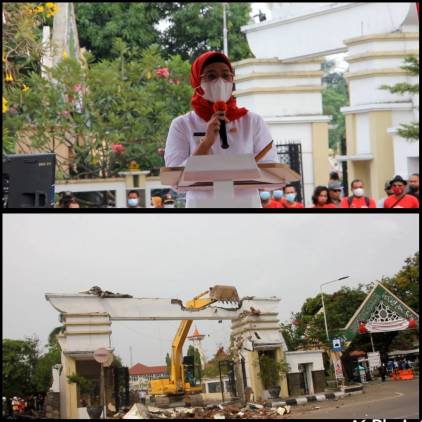 mandalapos.co.id, Indramayu– Setelah 10 tahun lamanya berdiri, tembok pagar pembatas yang mengelilingi Alun-Alun Indramayu, Jawa Barat akhirnya dibongkar pada Rabu (19/5/2021).