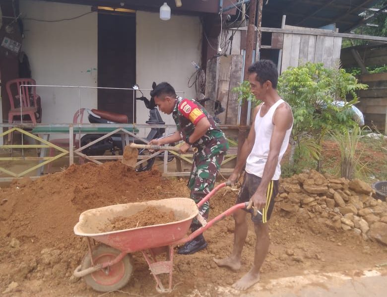 Mandalapos.co.id, Natuna – Sambil melaksanakan kegiatan komsos, Babinsa Koramil 02/Tarempa, Praka Gursing, membantu warga bernama Musa yang sedang melaksanakan penimbunan tanah untuk merehab rumah di Rintis Desa Tarempa Selatan, Kecamatan Siantan, Kabupaten Kepulauan Anambas, Jumat (13/9/2024).