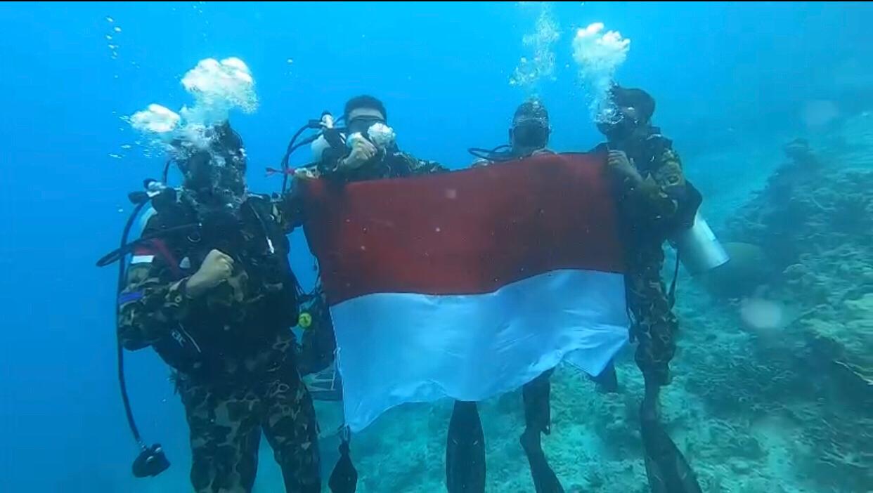 Butuh perjuangan ekstra untuk mengibarkan Sang Saka Merah Putih di bawah laut dengan kedalaman 20- 25 meter, namun dengan semangat kemerdekaan sekaligus untuk melatih profesionalisme prajurit, tantangan tersebut berhasil dilalui dengan baik.