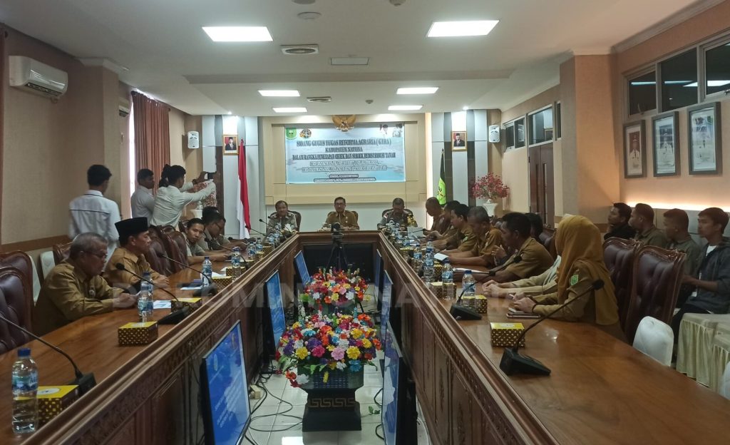 Mandalapos.co.id, Natuna – Sekretaris Daerah Kabupaten Natuna, Boy Wijanarko memimpin sidang Tim Gugus Tugas Reforma Agraria (GTRA) Kabupaten Natuna dalam rangka Penetapan Objek dan Subjek Redistribusi Tanah Kabupaten Natuna Tahun 2024 di Ruang Rapat Kantor Bupati Natuna, Senin (04/03/2024) pagi.