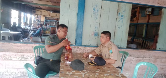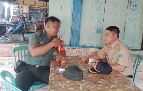 Mandalapos.co.id, Anambas — Babinsa Koramil 02/Tarempa, Serda Bambang.S, melaksanakan komsos dengan Kades Temburun di sebuah warung kopi di wilayah Kelurahan Tarempa, Kabupaten Kepulauan Anambas, Kamis (27/6).