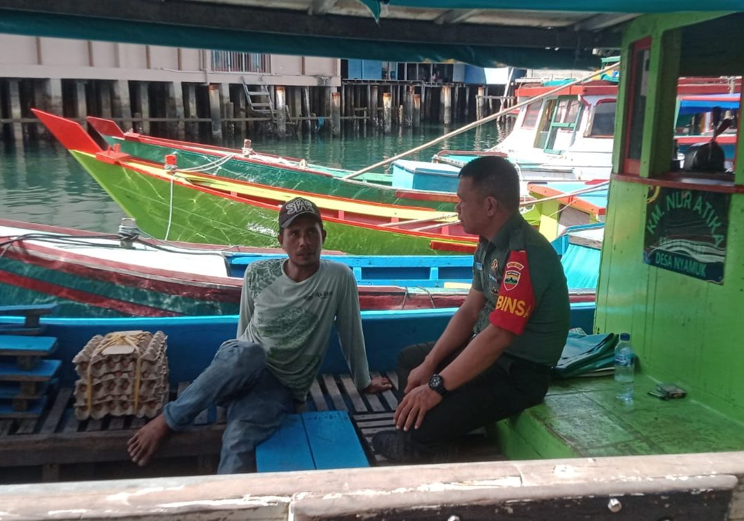 Mandalapos.co.id, Anambas — Anggota Koramil 02 Tarempa, Serda Bambang melaksanakan komsos dengan pemilik pompong penyeberangan antar desa di pelabuhan Kelurahan Tarempa, Kabupaten Kepulauan Anambas.