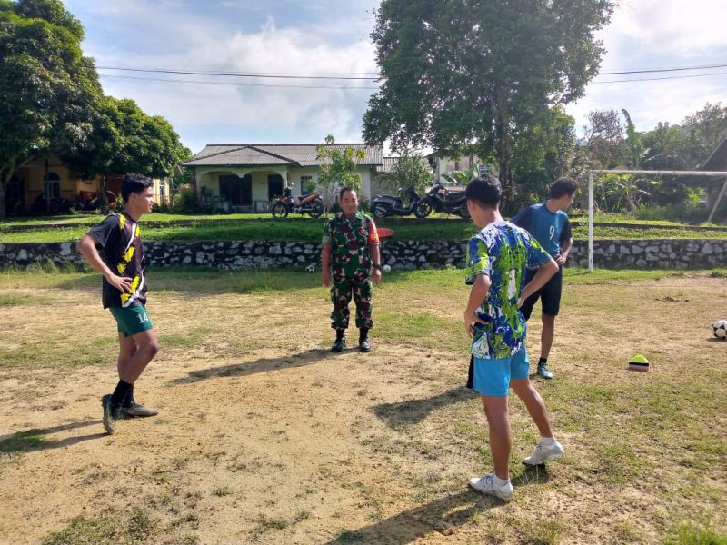 Mandalapos.co.id, Anambas — Babinsa Koramil 02/Tarempa, Serda Dandang Suharyadi melaksanakan komsos dengan Tim Sepakbola Pekan Olahraga Pelajar Daerah (POPDA) Kabupaten Kepulauan Anambas, di Lapangan Dusun Rintis, Desa Tarempa Selatan, Kecamatan Siantan, Kamis (4/7/2024).
