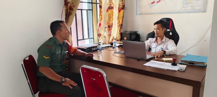 Mandalapos.co.id, Anambas — Anggota Koramil 02 Tarempa, Serda Ganda Fitrianto melakukan komsos dengan Sekdes dan perangkat Desa Sri Tanjung, Kabupaten Kepulauan Anambas, Senin (30/10).