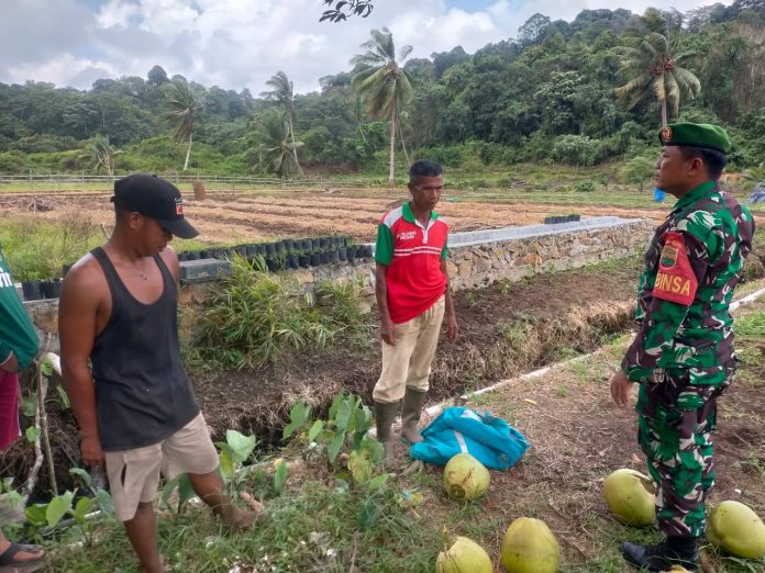 Mandalapos.co.id, Anambas — Babinsa Koramil 04/Letung, Serda Olih Solih, melaksanakan komsos dengan Ketua Kelompok Tani bernama Jana Hartono di Kampung Dungun Desa Bukit Padi, Kecamatan Jemaja Timur, Kabupaten Kepulauan Anambas, Selasa (19/3/2024).