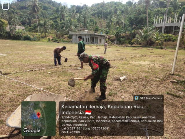 Anambas, Mandalapos.co.id —  Babinsa Koramil 04/Letung Kodim 0318/Natuna, Serda R.A. Binran Bol Hutabarat, melaksanakan kegiatan komunikasi sosial (komsos) melalui gotong royong bersama masyarakat di Desa Rewak, Kecamatan Jemaja, Kabupaten Kepulauan Anambas, Rabu (8/4/2026).