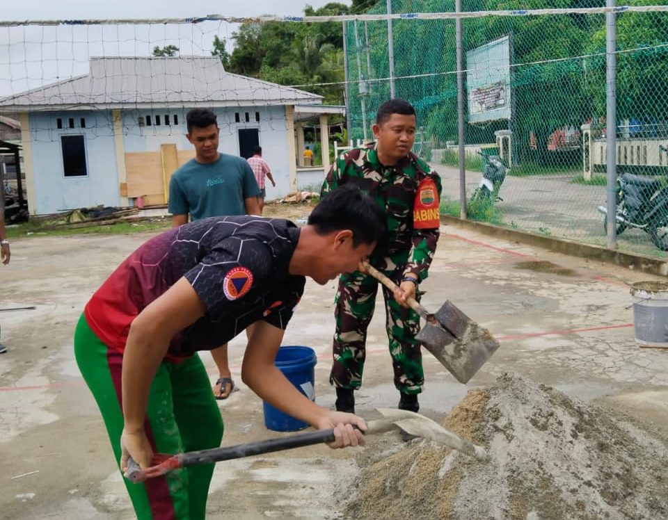 Mandalapos.co.id, Anambas – Babinsa Koramil 04/Letung, Serda Syamsul Fahri, membantu pemuda melaksanakan gotong royong perbaikan lapangan bola voli  di Kampung Baru Kelurahan Letung, Kecamatan Jemaja, Kabupaten Kepulauan Anambas, Sabtu (27/4).