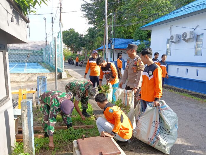 Mandalapos.co.id, Anambas — Anggota Koramil 02 Tarempa, Sertu Brandes mengikuti kegiatan Jumat Bersih di wilayah Kelurahan Tarempa, Jumat (29/12/2023) pagi.