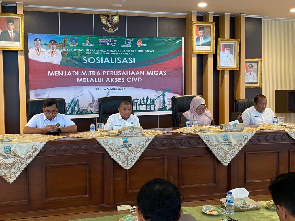 Mandalapos.co.id, ANAMBAS – Pemerintah Kabupaten Kepulauan Anambas melalui Dinas Koperasi dan Usaha Mikro Perdagangan dan Perindustrian (DKUMPP) bekerjasama dengan Satuan Kerja Khusus Pelaksana Kegiatan Usaha Hulu Migas (SKK Migas) menggelar sosialisasi dan pendaftaran Centralized Integrated Vendor Database (CIVD) bagi vendor atau Penyedia Barang dan Jasa (PBJ). Kegiatan ini dilaksanakan di Kantor Bupati Anambas, Rabu (15/3).