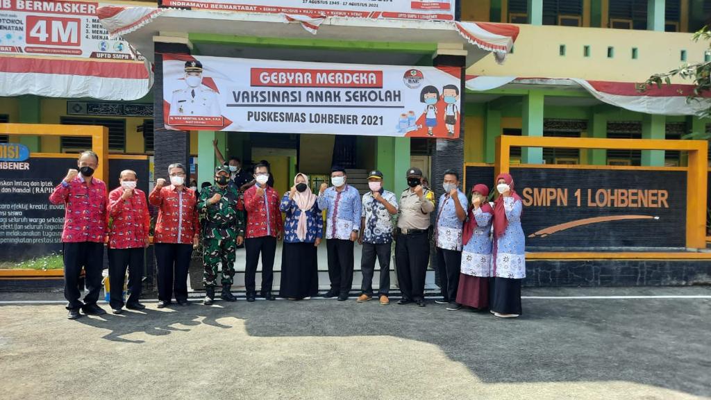 Mandalapos.co.id, Indramayu – SMPN 1 Lohbener, Kabupaten Indramayu, bekerjasama dengan Puskesmas Lohbener menggelar gebyar merdeka vaksinisasi, Kamis (5/8). Kegiatan dalam rangka menyambut HUT ke-76 RI itu, dikhususkan bagi kalangan pelajar yang usianya 12 tahun ke atas.