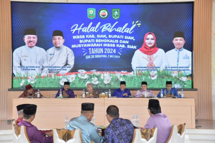 Mandalapos.co.id, Bengkalis — Mewakili Bupati Bengkalis, Staf Ahli Bupati bidang Pemerintahan Hukum dan Politik, Ed Efendi, menghadiri acara Halal Bihalal bersama IKBSB Kabupaten Siak, Bupati Siak, Bupati Bengkalis dan musyawarah IKBSB Kabupaten Siak Tahun 2024 yang bertempat di Aula Rumah dinas Bupati Siak Sri Indrapura, Kamis ( 2/5/2024) Pagi.
