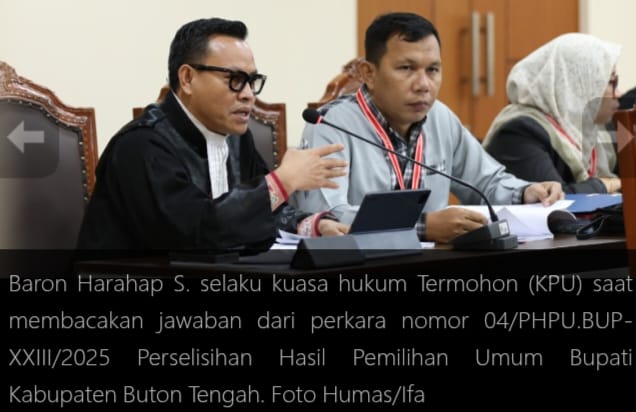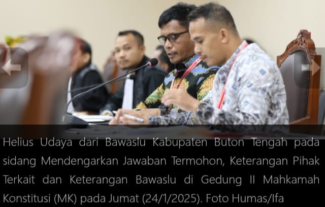 Mandalapos.co.id, Jakarta – Komisi Pemilihan Umum (KPU) Kabupaten Buton Tengah membantah lalai dalam penyelenggaraan Pemilihan Bupati dan Wakil Bupati Buton Tengah 2024. Bantahan disampaikan dalam Jawaban sebagai Termohon atas Perkara Nomor 04/PHPU.BUP-XXIII/2025 mengenai Perselisihan Hasil Pemilihan Umum (PHPU) Kepala Daerah 2024. Jawaban Termohon dibacakan dalam Persidangan Mendengarkan Jawaban, Keterangan Pihak Terkait dan Bawaslu, serta Pemeriksaan Alat Bukti di Gedung II Mahkamah Konstitusi (MK) pada Jumat (24/1/2025). Persidangan perkara ini dilaksanakan Majelis Panel Hakim 1 yang dipimpin Ketua MK Suhartoyo didampingi dua anggota panel yaitu Hakim Konstitusi Daniel Yusmic P. Foekh dan Hakim Konstitusi M. Guntur Hamzah.