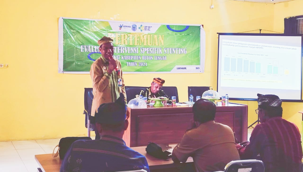 Pertemuan lintas sektor dalam rangka mengevaluasi capaian indikator intervensi spesifik dalam upaya percepatan penurunan stunting triwulan III tahun 2024, dibuka langsung oleh Staf Ahli Bupati Buton Tengah Bidang Ekonomi, Pembangunan dan Keuangan, Jamuri, mewakili Penjabat Bupati Buteng, didampingi Kepala Dinas Kesehatan, Kasman dan dihadiri Direktur RSUD, perwakilan Bappeda, Dinas Pendidikan dan Kebudayaan, Dinas Sosial, Dinas Perikanan, Dinas PMD, Dinas PUTR, Dinas Pemberdayaan Perempuan dan Anak, Dinas Kependudukan dan Catatan Sipil, Dinas Kominfo, Dinas PPKB, Dinas Pertanian, dan Kementerian Agama Buteng.