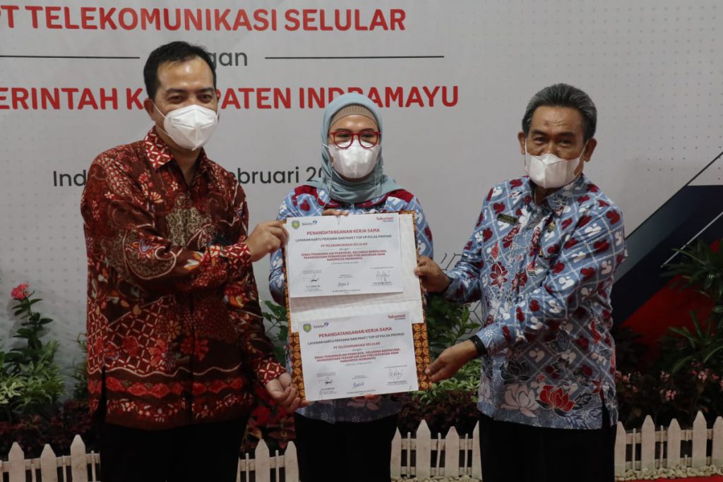 Kerjasama antara Pemerintah Kabupaten Indramayu dan PT. Telkom Indonesia ini ditandai dengan penandatanganan oleh kedua pihak terkait pelayanan kartu perdana dan paket top up pulsa prepaid untuk 4.239 orang pendamping keluarga pada Dinas Pengendalian Penduduk, Keluarga Berencana, Pemberdayaan Perempuan dan Perlindungan Anak (Disduk -P3A) Kabupaten Indramayu, di Pendopo Indramayu, Jum’at (18/2/2022).