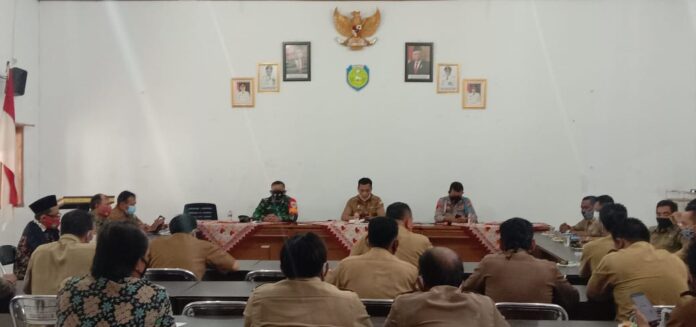 “Rutin melaksakan Prokes dengan mengintensifkan 5M yakni menggunakan masker, mencuci tangan, menjaga jarak, menghindari kerumunan dan mengurangi Mobilitas, serta melakukan penguatan terhadap 3T ( testing, tracing; Dan treatment (menyiapkan dan memantau ketersediaan tempat isolasi dan karantina hingga tingkat desa,”katanya disela – sela Rakor.