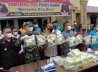 Kapolres Asahan, AKBP Putu Yudha Prawira, menjelaskan barang bukti tersebut diamankan dari rumah seorang warga berinisial NT di Lingkungan II, Kelurahan Keramat Kubah, Kecamatan Sei Tualang Raso Kota Tanjungbalai, Jumat ( 27 / 8 / 2021) lalu.