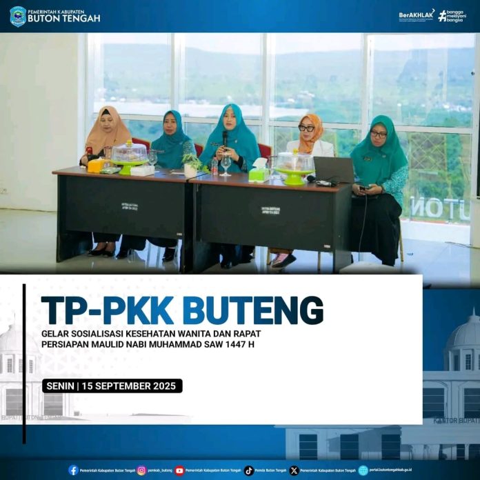 Buton Tengah, mandalapos.co.id — Tim Penggerak Pemberdayaan dan Kesejahteraan Keluarga (TP-PKK) bersama Dharma Wanita Persatuan (DWP) Kabupaten Buton Tengah, Provinsi Sulawesi Tenggara, menggelar kegiatan sosialisasi kesehatan yang menitikberatkan pada isu kesehatan reproduksi dan pencegahan hipertensi pada wanita.