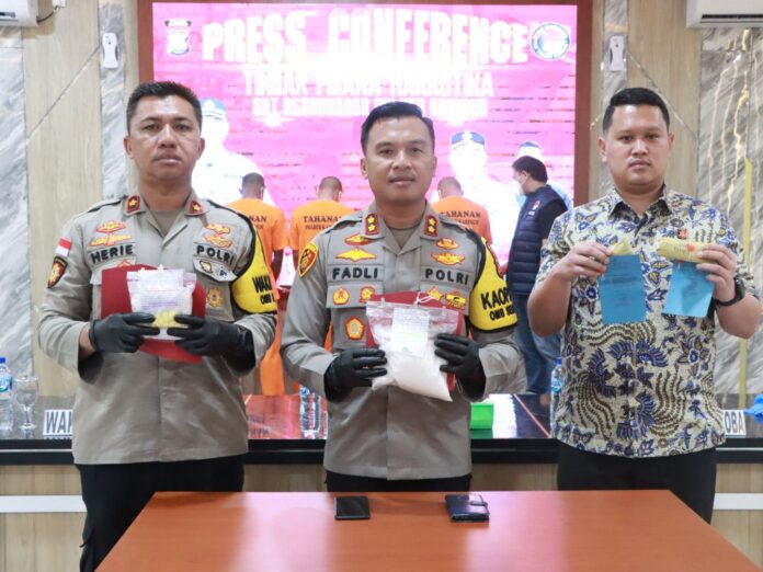 Kapolres Karimun AKBP Fadli Agus, memimpin langsung kegiatan konferensi pers tersebut. Turut mendampingi, Wakapolres Karimun Kompol Herie Pramono dan Kasat Narkoba Polres Karimun, IPTU Alfin Dwi Wahyudi Nuntung.