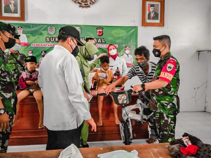 Pemberian hadiah dilakukan saat proses vaksinasi Covid-19 untuk masyarakat umum dan anak-anak usia 6 hingga 11 tahun yang diselenggarakan Pemerintah Desa Cikedunglor bekerjasama dengan Pusat Kesehatan Masyarakat (Puskesmas) Cikedung Indramayu, di Kantor Desa Cikedunglor, Rabu (12/1/2022).