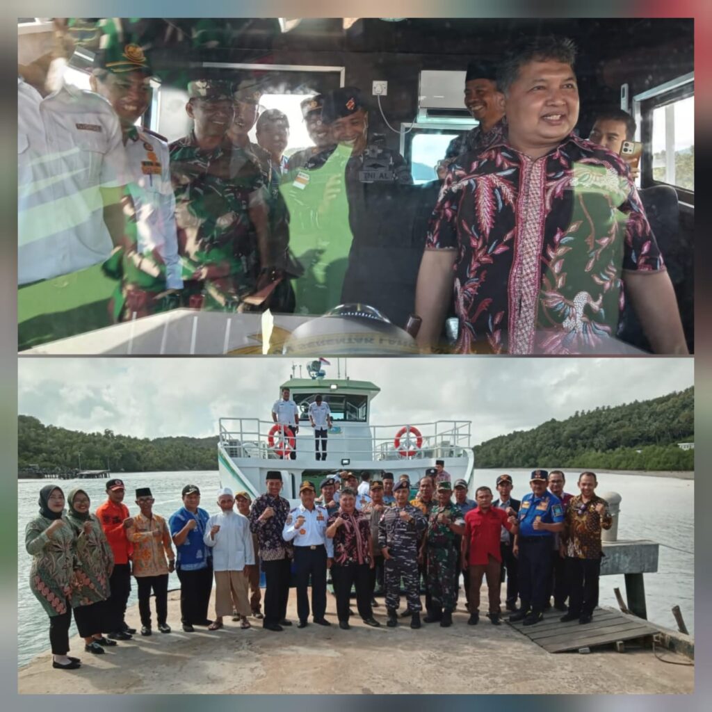 Usai melakukan prosesi tepung tawar, Wabup Kepulauan Anambas Wan Zuhendra, bersama Forkopimda melakukan uji coba pengoperasian Kapal Penyeberangan Bus Roro tersebut. **