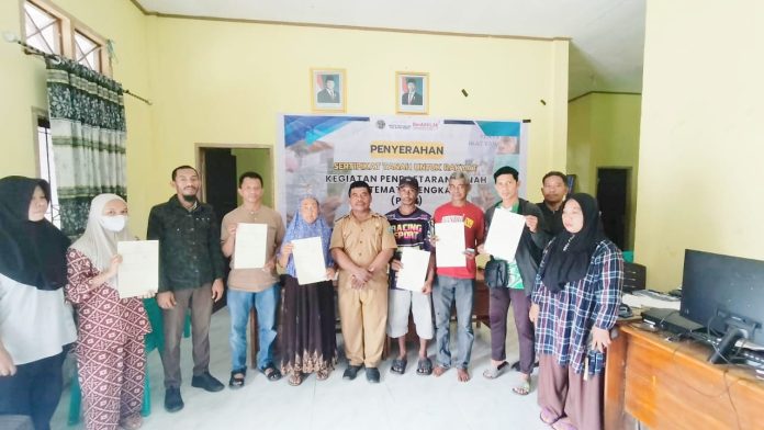 Penyerahan dilakukan secara simbolis dan kolektif oleh tim Kantor Pertanahan Kabupaten Buton Tengah yang diwakili oleh petugas pengumpulan data yuridis, Ishak, S.H. dan Ld. Muhammad Jalaludin, S.H. Kedatangan tim disambut antusias oleh warga yang telah menantikan kepastian hukum atas tanah mereka.