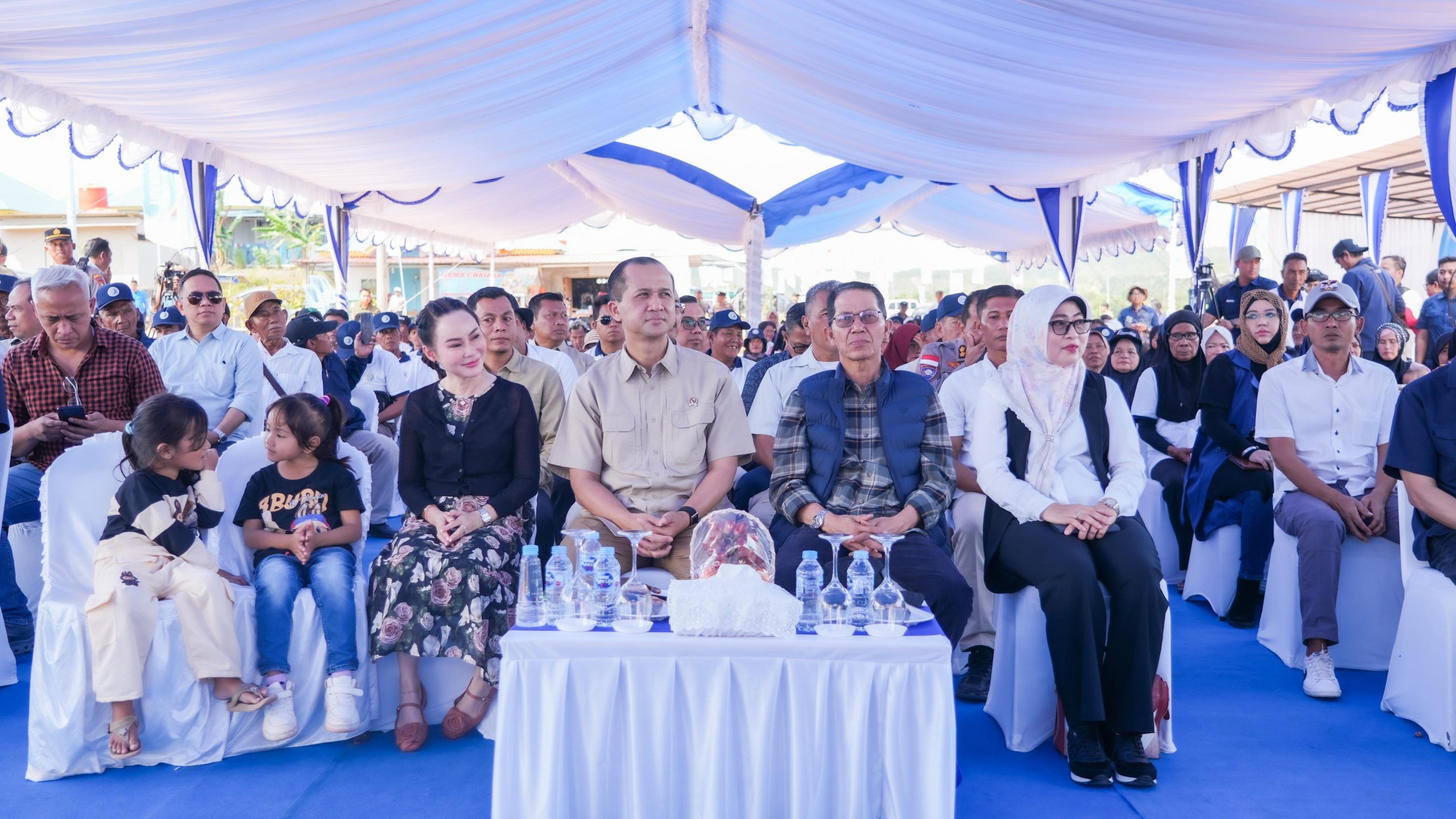 Mandalapos.co.id, BATAM – Kepala BP Batam, Amsakar Achmad dan Wakil Kepala BP Batam, Li Claudia Chandra menghadiri penyerahan bantuan perbekalan dan santunan nilai rumah asal kepada masyarakat transmigrasi lokal, di Tanjung Banun, Minggu (21/12/2025).