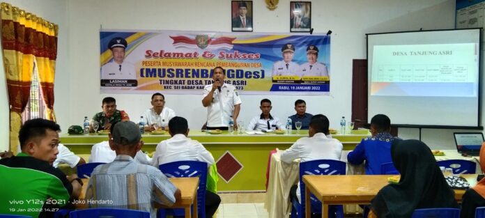 Mandalapos.co.id, Asahan – Kepala Desa Tanjung Asri, Lasiman, memimpin langsung acara Musrenbang Desa Tahun 2022, Rabu ( 19/01/2022). Dalam acara tersebut, Lasiman mengharapkan agar tahun 2022 ini Dinas Kesehatan Kabupaten Asahan segera membangun Pusat Kesehatan Desa (Puskesdes).
