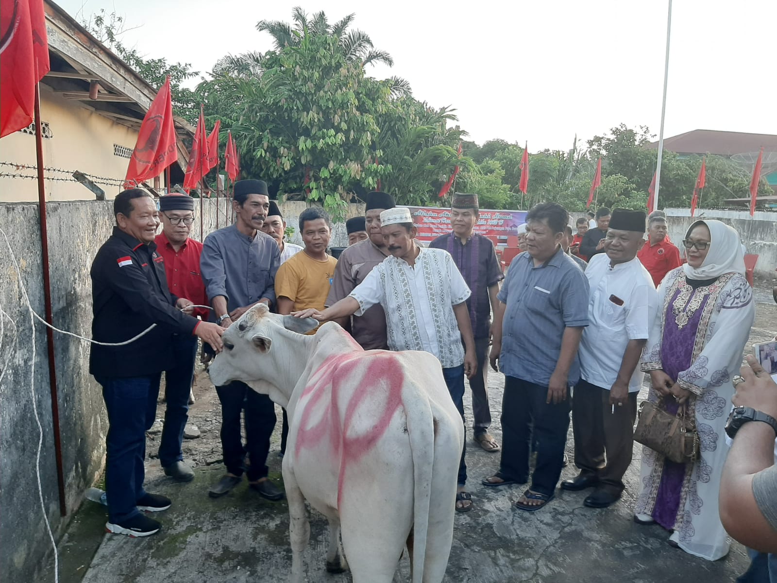 Mandalapos.co.id, Padangsidimpuan — Ketua DPD Partai Demokrasi Indonesia (PDI) Perjuangan Provinsi Sumatera Utara (Sumut), Drs Rapidin Simbolon, salurkan seekor hewan kurban berupa lembu ke DPC PDI Perjuangan Kota Padangsidimpuan, Kamis (7/7/2022) sore.